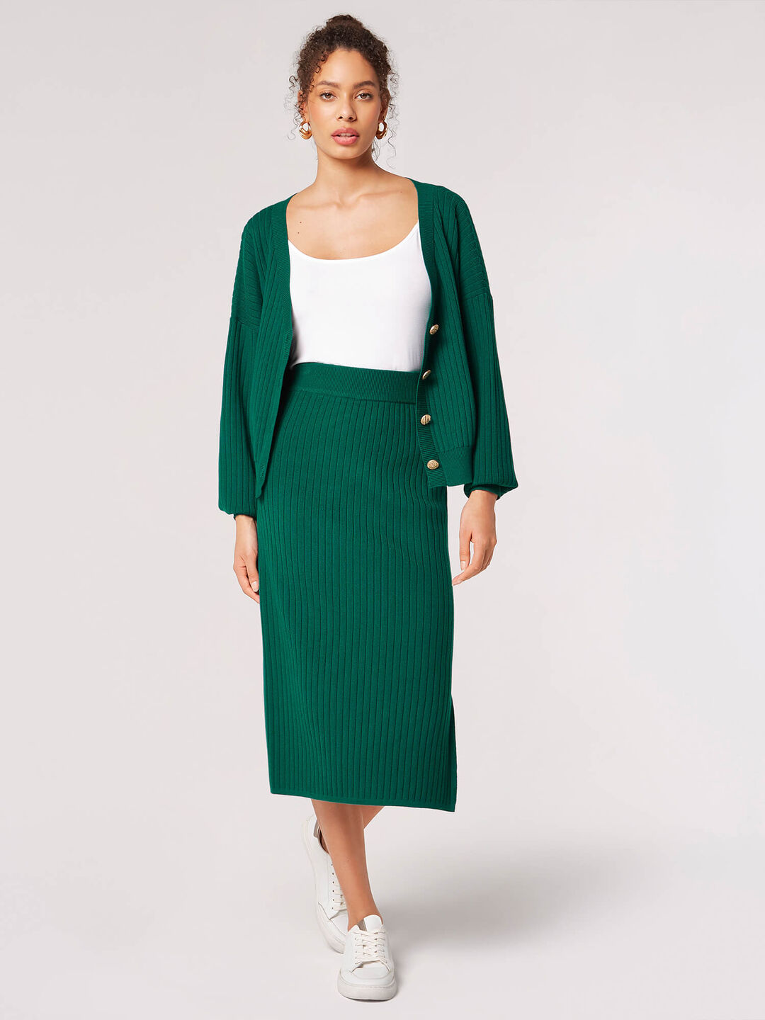 Chocolate Ribbed Knitted Midi Skirt Forever Unique